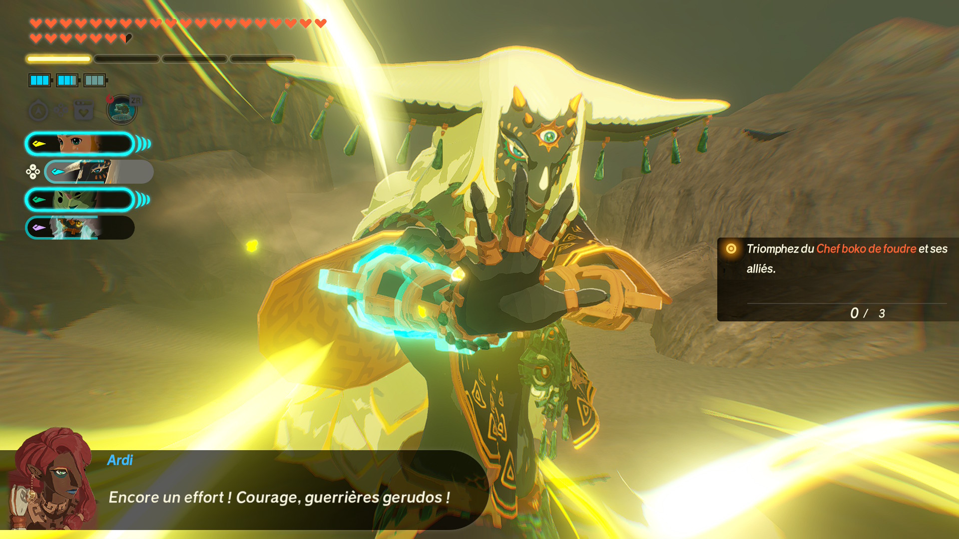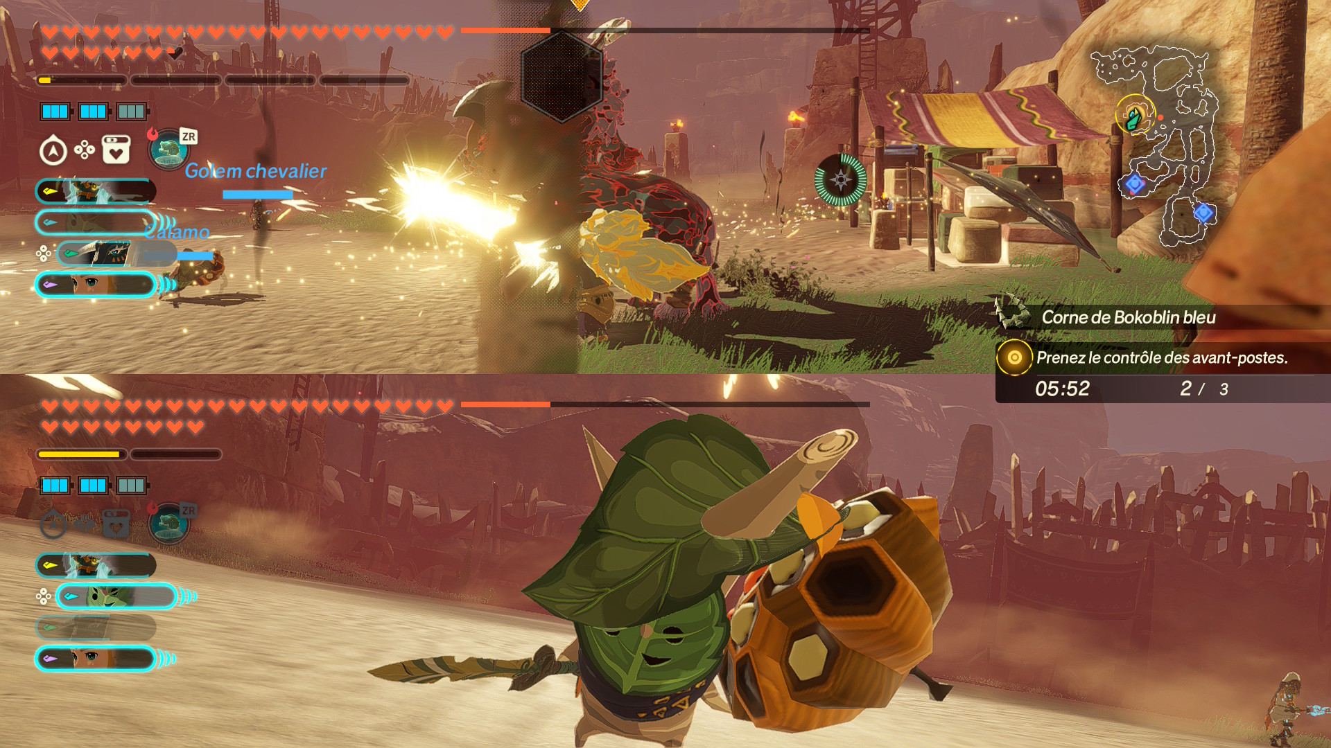 Et clairement, tout ça, c'est le principal intérêt du jeu. Vivre cette guerre, ressentir la sueur des peuples d'Hyrule qui s'allient pour combattre Ganondorf et ses armées. Il y a tout un tas de mécanismes en jeu assez intéressants, des missions partout pour libérer les terres d'Hyrule, tout un tas de choses à débloquer pour augmenter la puissance de vos personnes. Ces missions ont le bon gout d'être souvent très courtes, juste de quoi profiter de quelques minutes de combats dynamiques avec des personnages que l'on ne pouvait pas jouer dans TOTK et qui expriment toutes leurs puissances.